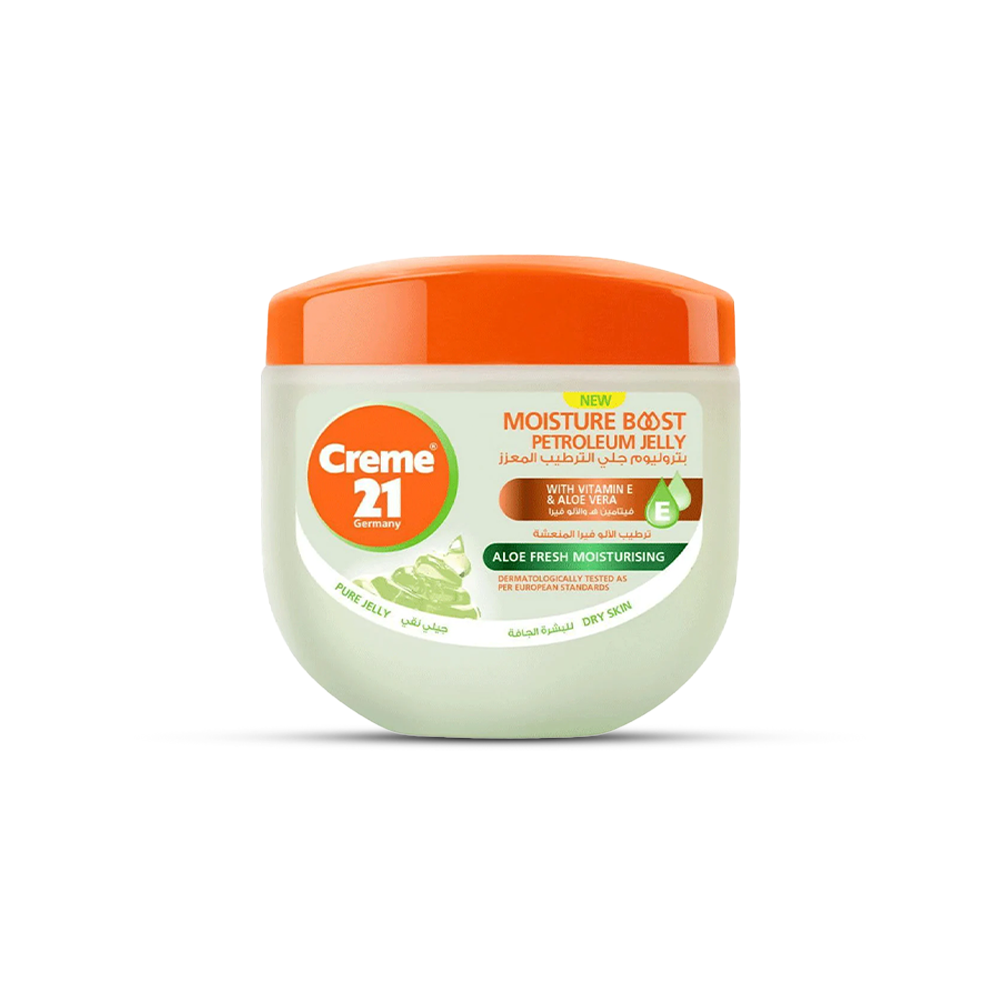 Enjoy the rich moisturizing properties of CREME 21 COCOA RICH MOISTURISING PETROLEUM JELLY 300ML for your skin. Your skin will be left feeling soft, smooth, and incredibly supple thanks to the deep moisturizing and protection provided by this rich and nourishing composition. This petroleum jelly, infused with the goodness of cocoa butter, helps to build a barrier that protects against dryness and environmental stressors and helps to retain moisture. As this rich solution absorbs into your skin and provides long-lasting hydration that keeps your skin looking healthy and beautiful, bid adieu to rough, flaky skin.